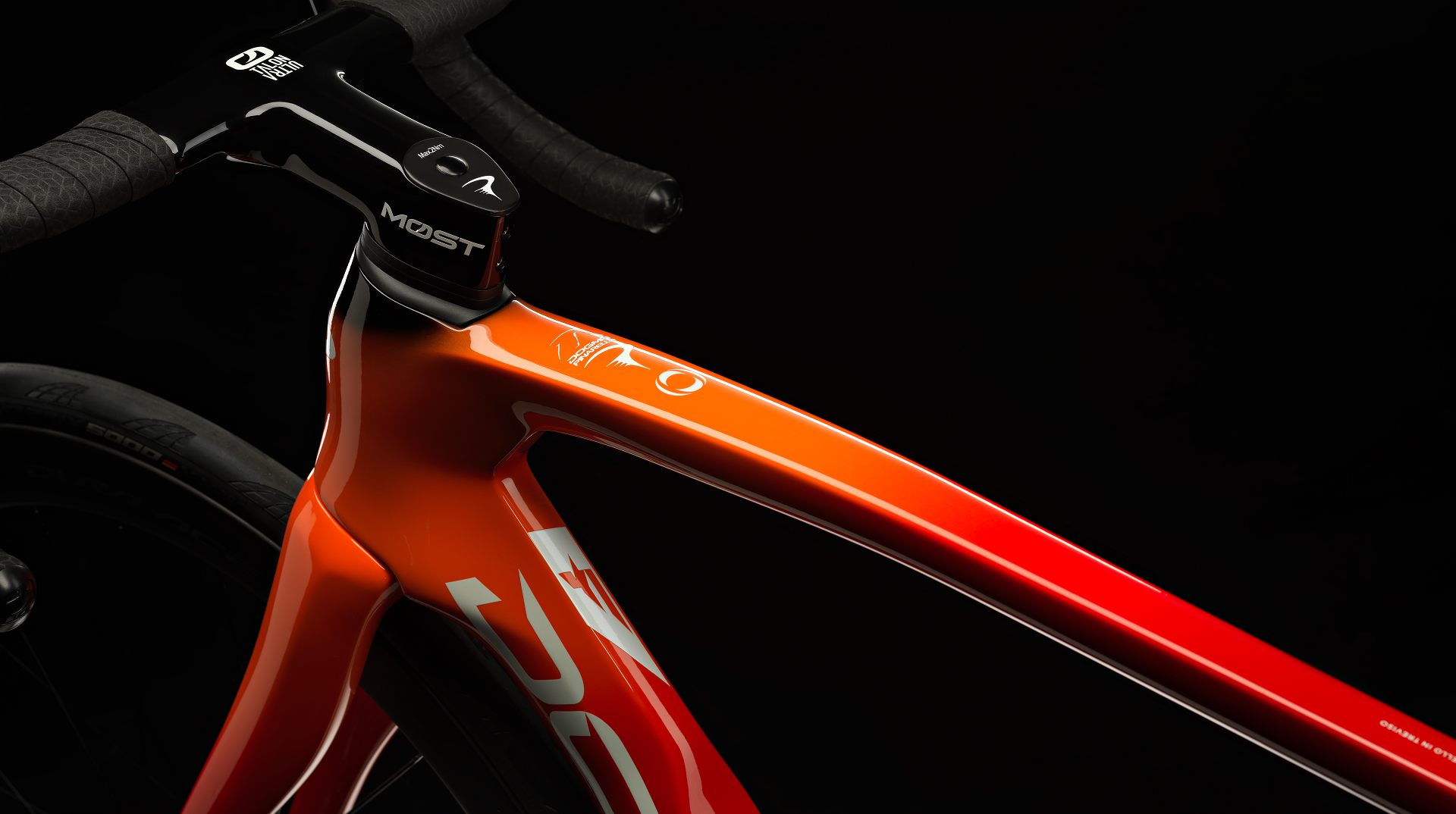 Dogma F + Red AXS 2x12 + DT Swiss: A SRAM Red AXS 2x12-es elektromos alkatrészcsaládja az egyik legjobb választás high end viszonylatban. A MOST Talon Ultra Fast integrált karbon kormánya, a DT Swiss ARC 1400 Dicut 50 DB karbon kerekei és a Continental GranPrix 5000S TR gumijai egészítik ki a Dogma F karbon vázát.
